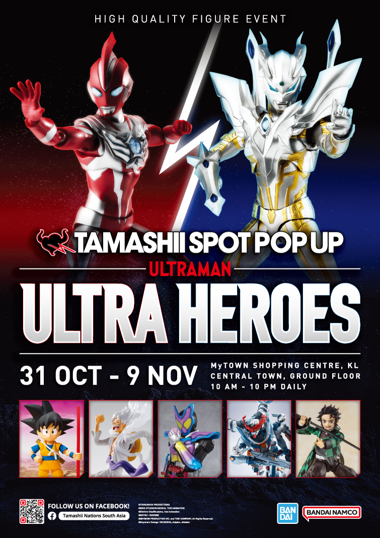 Kuala Lumpur, 31st October 2025 – The TAMASHII SPOT POP UP X ULTRA HEROES 2025 will be landing right here in Malaysia, from October 31st till November 9th 2025 at the MyTOWN Shopping Centre, Kuala Lumpur.