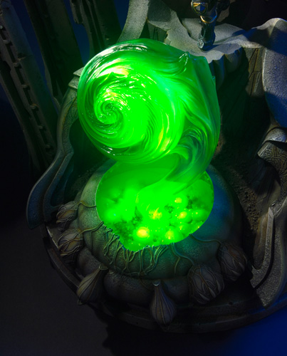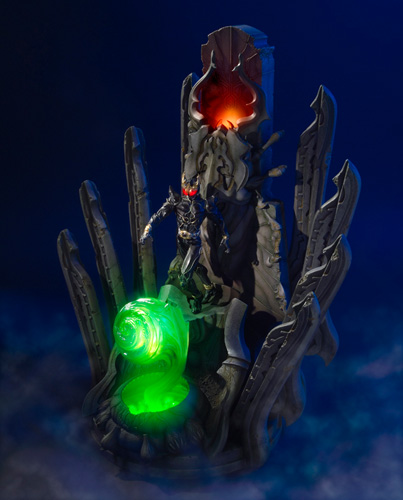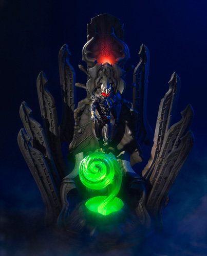 加えて、中央の複数色LEDを採用した妖艶なオブジェをはじめ、揺らめくライティングや力溢れる瞳の輝きをLEDを多用することでディオラマの持つ静寂とした冷ややかな雰囲気、と禍々しさを演出している。