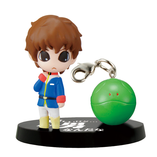 デフォルメフィギュアとチャームがセットになったプロッププラスプチ。ガンダム30周年を記念して、歴代のキャラクターが夢の競演!