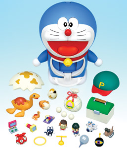 劇場版「ドラえもん のび太の恐竜2006」公開を記念した超合金ガチャガチャドラえもんの特別セットです。映画に登場するひみつ道具や、かわいいピースケのフィギュアなどが多数付属します。しっぽを引っ張るとおなかの四次元ポケットからひみつ道具の入ったカプセルが飛び出し、「ガチャガチャ」遊びができます。